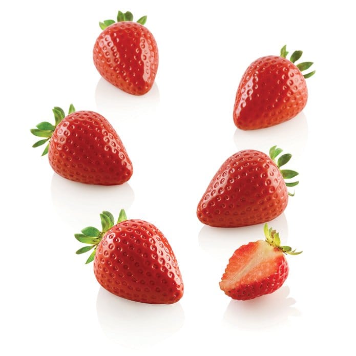 Fragola 30 – Erdbeere ist eine Silikonmatte mit 15 Gussformen pro Blatt. Mit dieser Gussform können Sie Kopien von Erdbeeren herstellen.