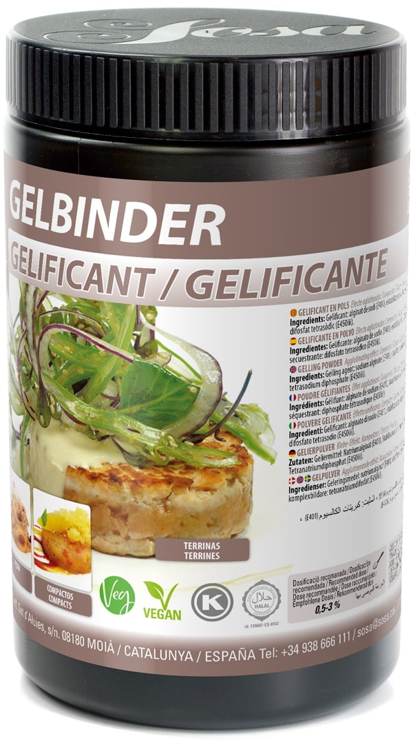 Gelbinder ist ein technisches Gelier- und Bindemittel, das entwickelt wurde, um Struktur und Zusammenhalt in Gerichten wie Terrinen, Burgern und Tatarern zu schaffen. Die Formel basiert auf Alginat, Calciumsulfat und Phosphat – was eine starke und wärmebeständige Bindung ohne Geschmacksbeeinträchtigung bietet.